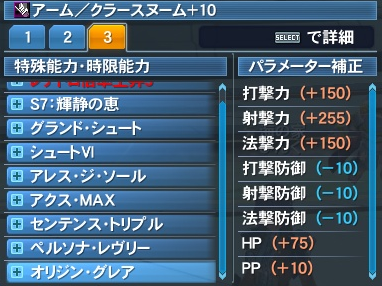 新クラス追加キャンペーンからみの報酬でリバレイト腕が作れたので、6スロ化して色々くっ付けて、クラース8スロに特殊能力移植。移動時にグランドカプセルとS枠追加した感じデス。