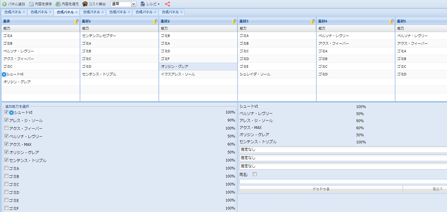 ベースの作成と最終合成だけ素材を5個使ったので合成代100万台でしたが、あとは10万以下です。グランドカプセルだけはガチャで出たやつですが、あとは夏緊急と最近の緊急産でいっぱい出たやつですね。グランドは買うと高いのでグレース(うちの鯖は300万くらい)で作れば合成代込みで600万もあれば作れそうです。たぶん、移植先のクラースを4から8スロに上げたのが一番大変だった気がしますw