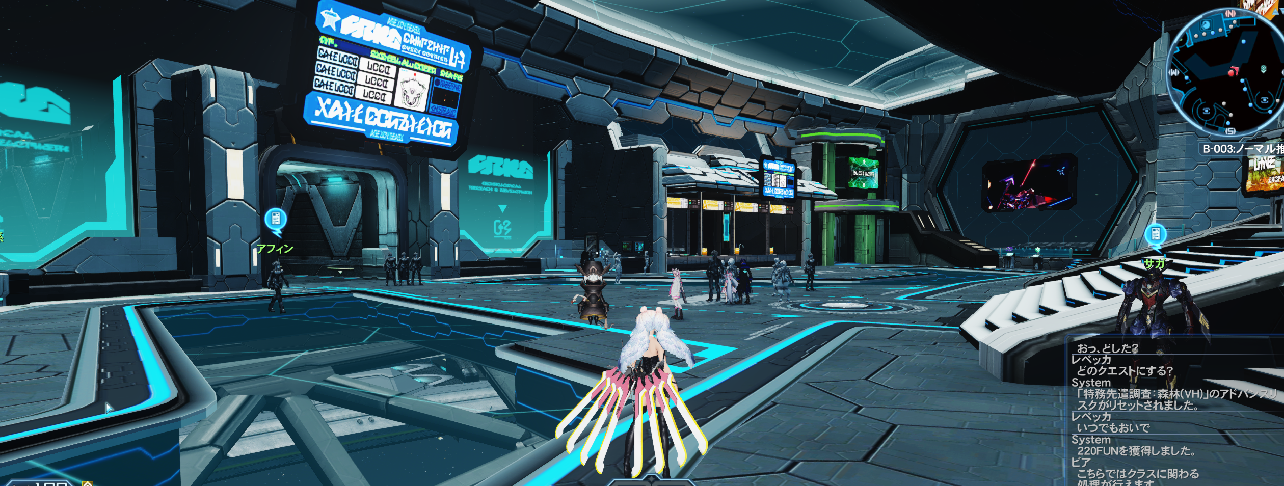 ちなみにスクラッチの処理画面なんかもPSO2NGS仕様になっていたので、NGS上でPSO2をエミュレートしてる感じなんでしょうか。描画か鯖かはわかりませんがPSO2よりも重いみたいで、グレーマンがいっぱいいます。