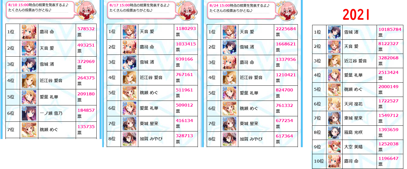 シャーリーは7章記念のログボでも登場するんですが、ロスストのシャーリーはTV版で見てた頃よりもかなりいい感じになった気がしてるんですよねー。おもてなし喫茶のときも思ったんですけど。シナリオはほぼ変わってないはずなんで、変わったとすれば新規部分の喋り方なのかなぁ。(*´ω`*)ヨイネ