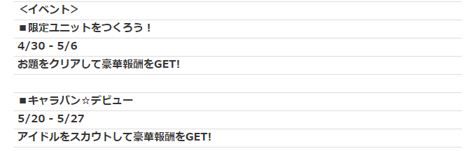 5月のスケジュールがでました~(゚∀゚)