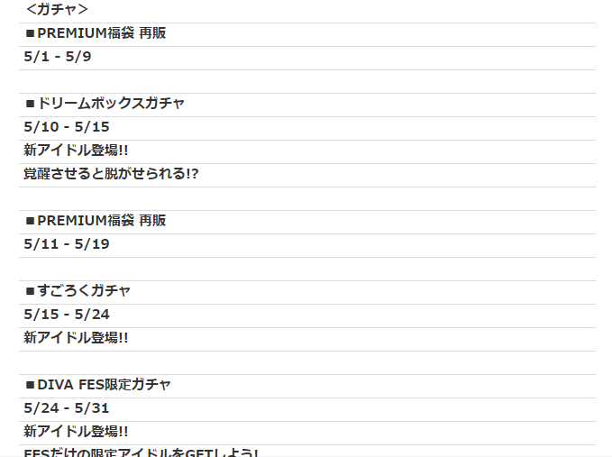 ガチャの方は福袋の再販くらいかな。