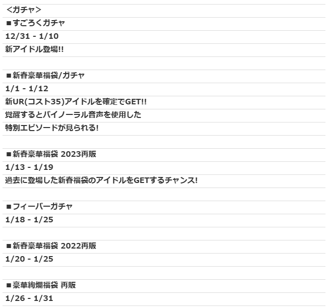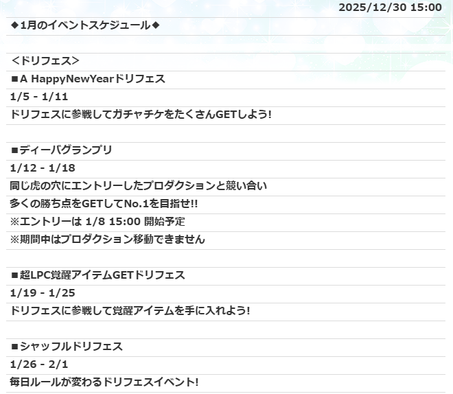 【アイドルうぉーず】1月スケジュールですよ(゚∀゚)