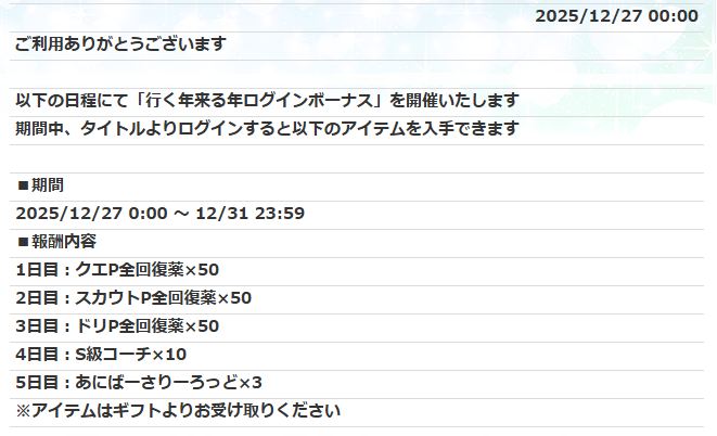 とりあえず年越しに何か来るかもなのでギリまで様子見て考えよう。