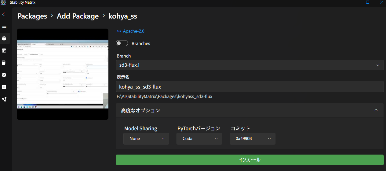 中身はさっぱりわかりませんが、まずはトライということで、久々にkohyaーssのアップデートと思ったのですが、今はstability matrixからのインストールができるらしいのでそちらに新しく入れることにしました。