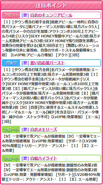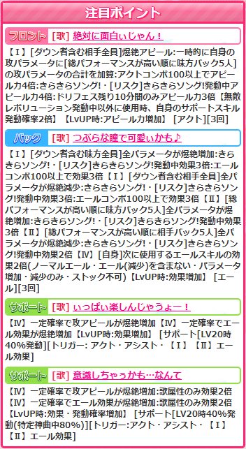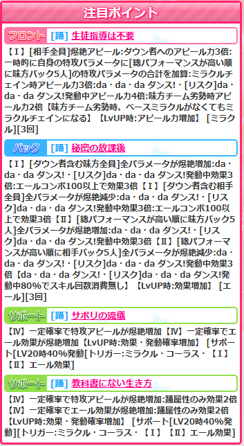 バックスキル【秘密の放課後】は踊神歌80%消費なしの前後バフデバフです。よくあるスキルですけど使えるのでまぁヨシ( ゚Д゚)