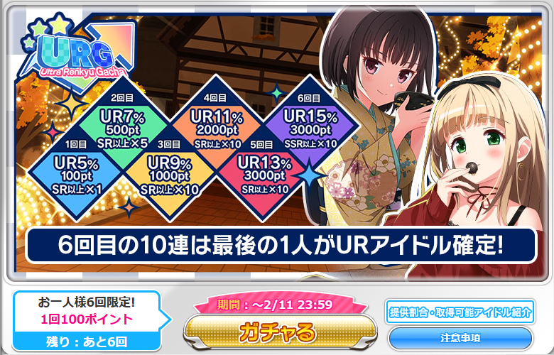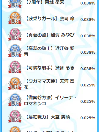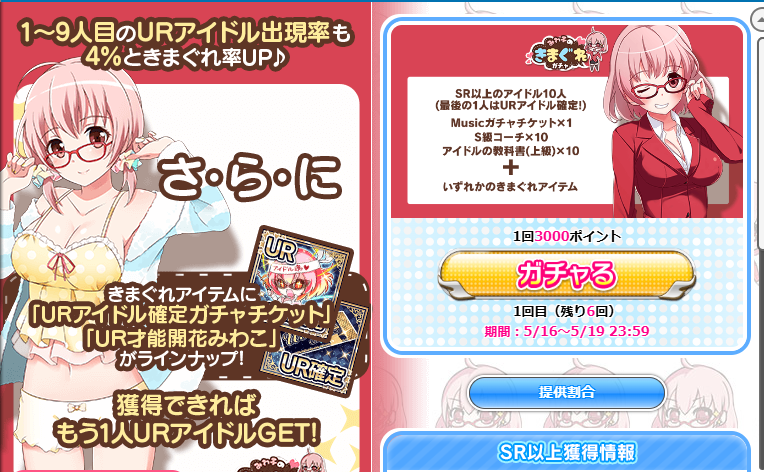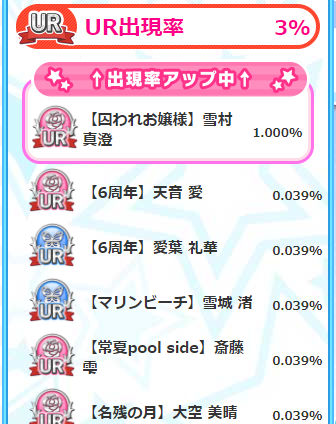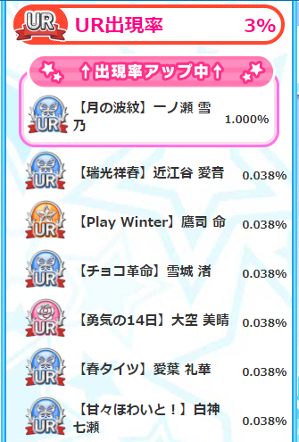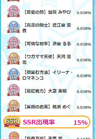 さて、ガチャ自体は、URも3%しかないですし、そこまで魅力ある感じではないですが、