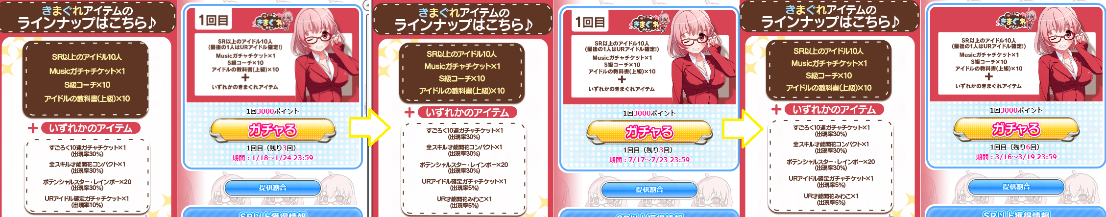報酬の中身も基本的に上方修正。中身の相対的価値が下がったというのはありますけど、個人的にはかなり引きやすくなった気がしますね(゚∀゚)
