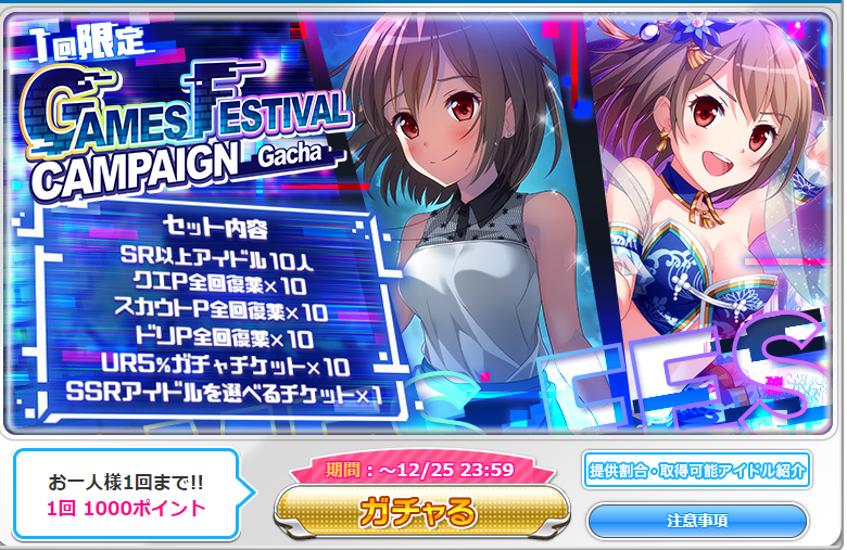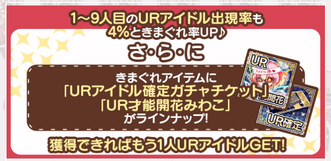 まず一番でかいのはボックス内に新アイドル確定がはいったところ。これで全部引けば確実に一枚入手可能です。