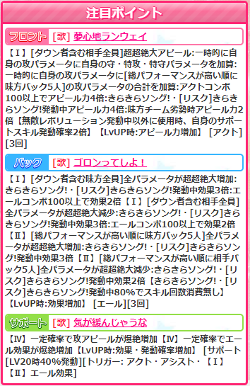 バックの方も消費無し付きでバフデバフ両方使えますし、無課金の新規向けにはよさそうなアイドルですねー。