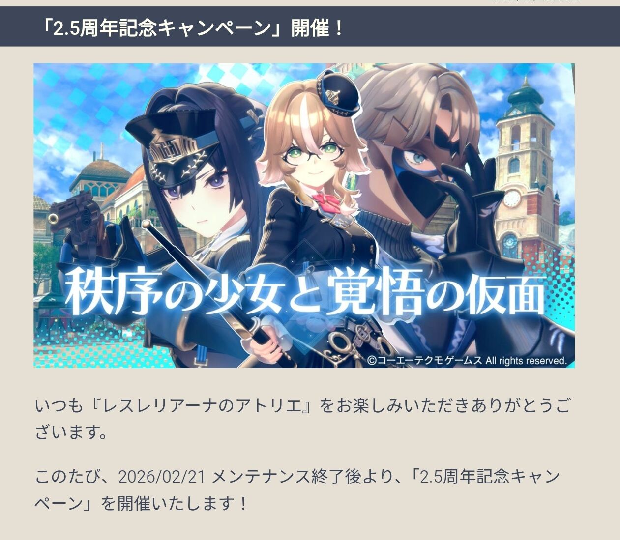 【レスレリ】トップ絵変わった!と思ったら2.5周年らしいよ