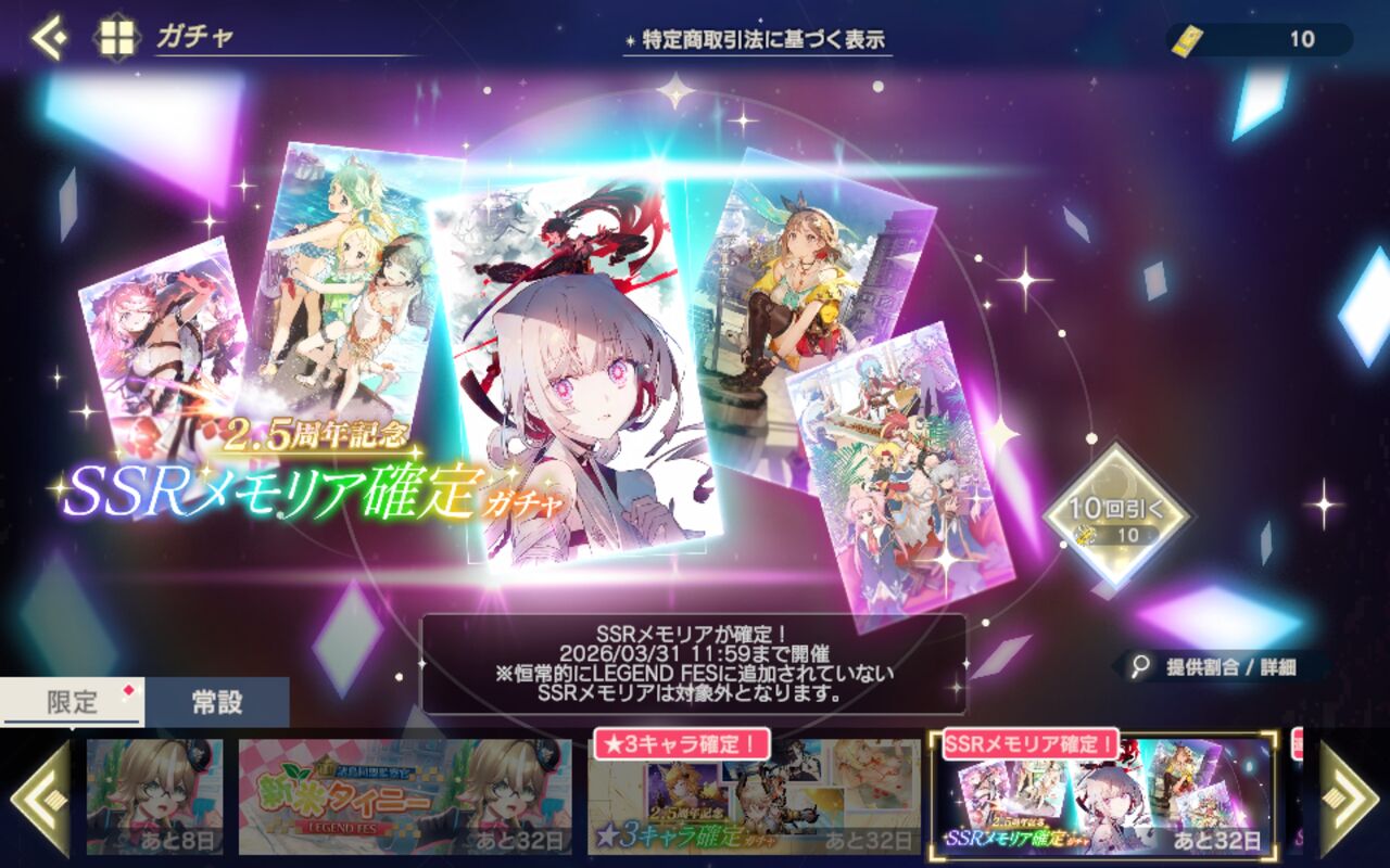 なんか新キャラも出てきましたけど、次のガチャはジェロンだとして、シナリオは一応片付いてるし、残り期間もそんなにないので、その次のガチャくらいにくるのかなぁ。